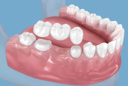 A dental bridge is a fixed dental restoration used to replace one or more missing teeth. It consists of one or more artificial teeth, known as pontics, which are supported by crowns placed on the adjacent natural teeth or dental implants.