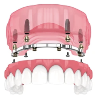 Los implantes dentales de boca completa sustituyen todos los dientes del maxilar superior, inferior o ambos utilizando un número reducido de implantes que soportan una arcada completa de dientes protésicos.